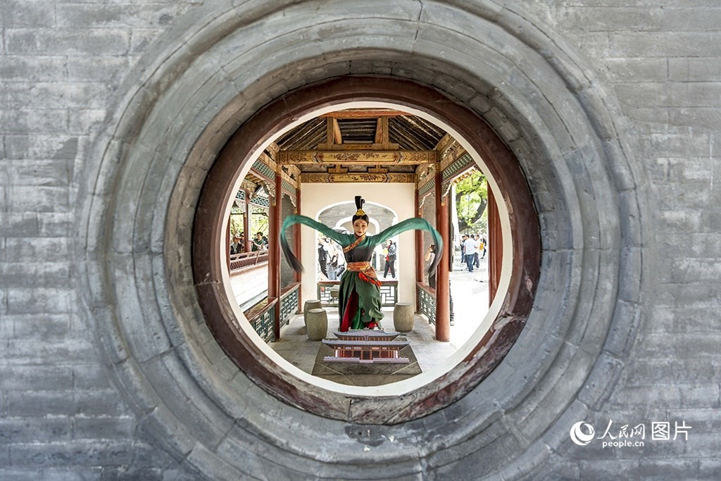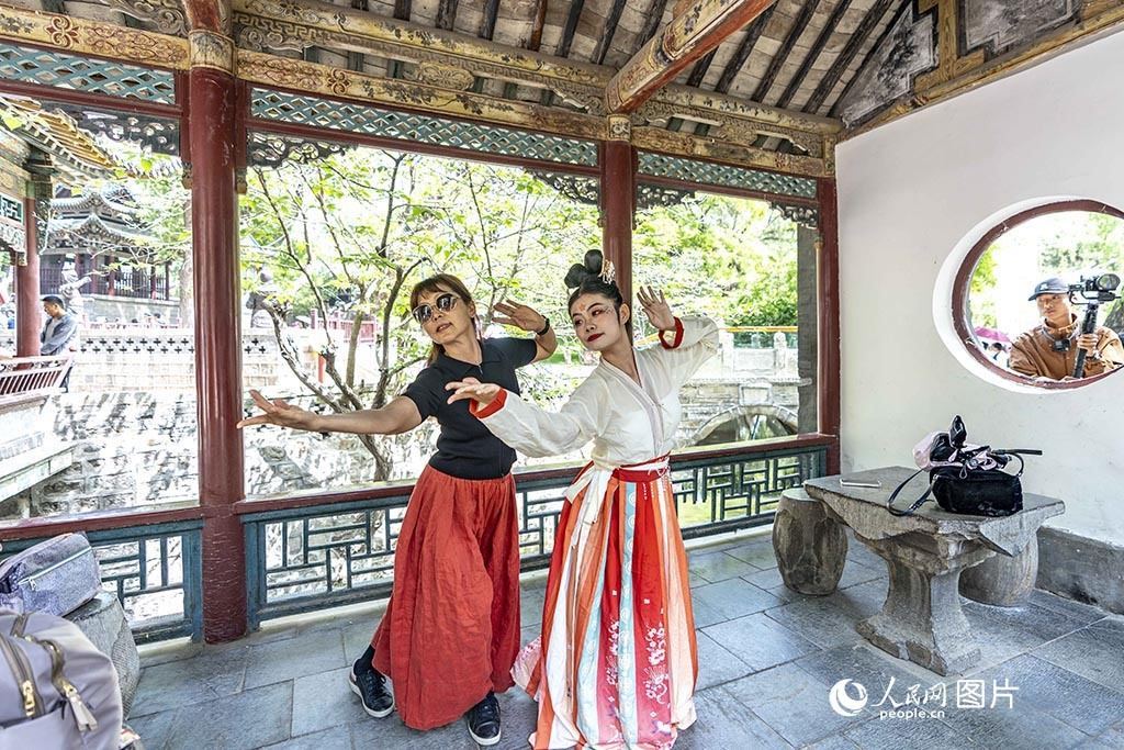 5月18日,在山西太原晉祠博物館內(nèi)隨處可見(jiàn)的漢服游園表演。人民網(wǎng) 盧鵬宇攝