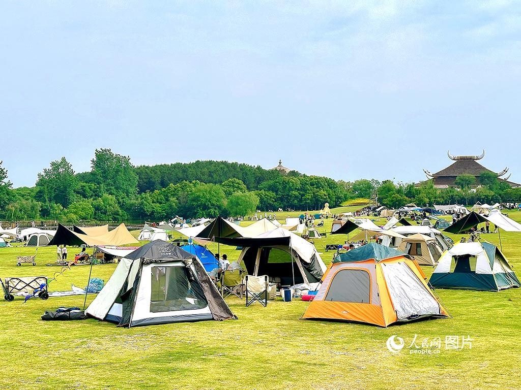 5月13日,眾多游客在位于武漢市黃陂區(qū)王家河鎮(zhèn)的木蘭草原景區(qū)露營(yíng)。人民網(wǎng)記者 張沛攝