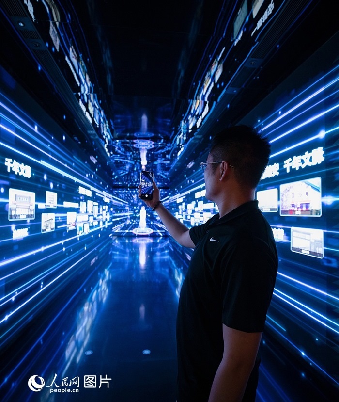 中國(guó)旅游日前夕,游客在雄安印象展館內(nèi)參觀體驗(yàn)。人民網(wǎng) 李兆民攝