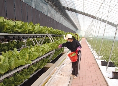 在黃灣村,還能采摘。離共享農(nóng)場不遠,就是村里打造的現(xiàn)代農(nóng)業(yè)產(chǎn)業(yè)園。玻璃溫室中,西紅柿等爬藤類蔬菜沿繩索生長,各類葉菜則長在栽培架上。