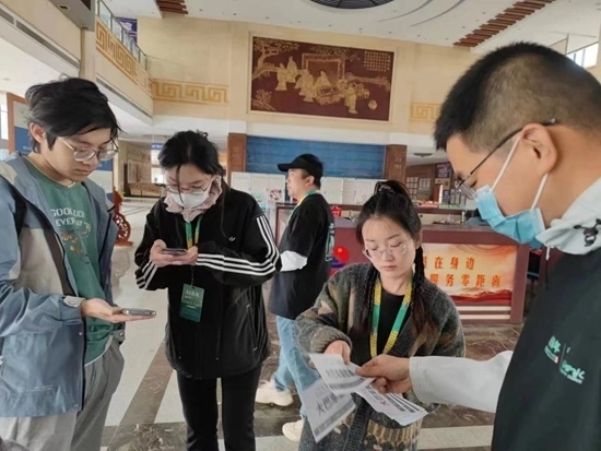 在高鐵曲阜東站,志愿者幫助樂(lè)迷了解音樂(lè)節(jié)接駁車行駛路線及乘坐流程。徐晨光/攝