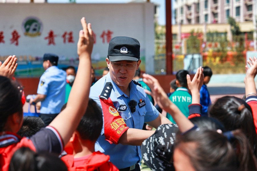 在校園里,民警針對(duì)學(xué)生們貪玩、好奇的心理,專門設(shè)計(jì)制作了卡通展板和宣傳冊(cè),并設(shè)置了互動(dòng)游戲和有獎(jiǎng)問答環(huán)節(jié),提高萌娃們主動(dòng)參與和開動(dòng)腦筋的積極性,進(jìn)而加深學(xué)習(xí)印象。