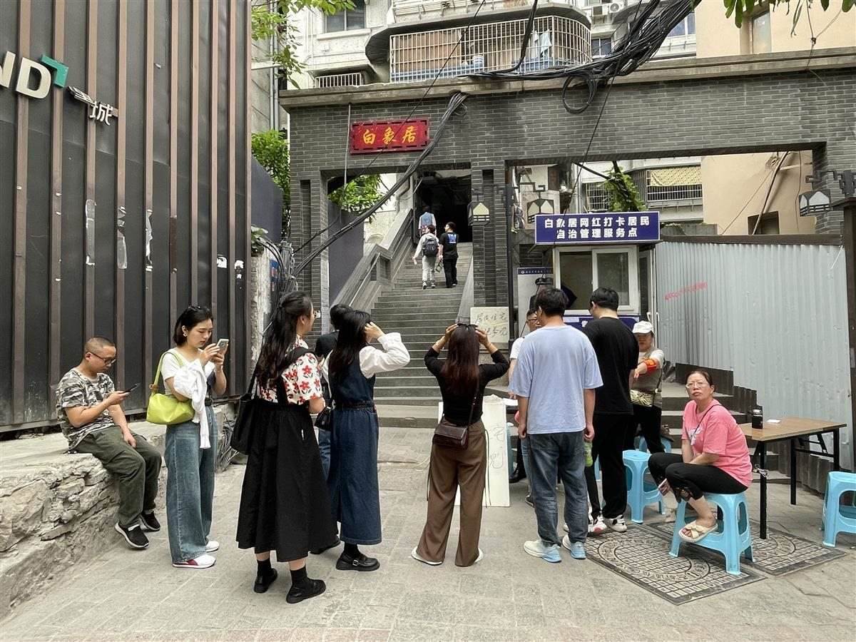 情況說明還顯示,因外來游客太多,居民不堪其擾,5月23日下午,小區(qū)居民自發(fā)組織“居民自治小組”在白象居大門設(shè)置“居民住宅,謝絕參觀”字牌進(jìn)行訪客準(zhǔn)入登記,自發(fā)維護(hù)白象居居民樓內(nèi)部秩序管理,維護(hù)小區(qū)安寧。目前,白象街社區(qū)居委會已介入居民自治小組的協(xié)調(diào)工作,力爭在游客參觀和居民訴求之間找到一個(gè)平衡點(diǎn)。