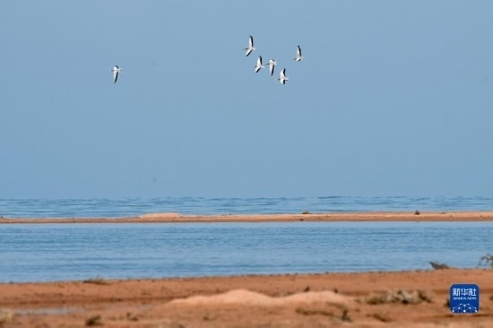 一群斑頭雁在阿爾金山國家級(jí)自然保護(hù)區(qū)飛翔(5月23日攝)。