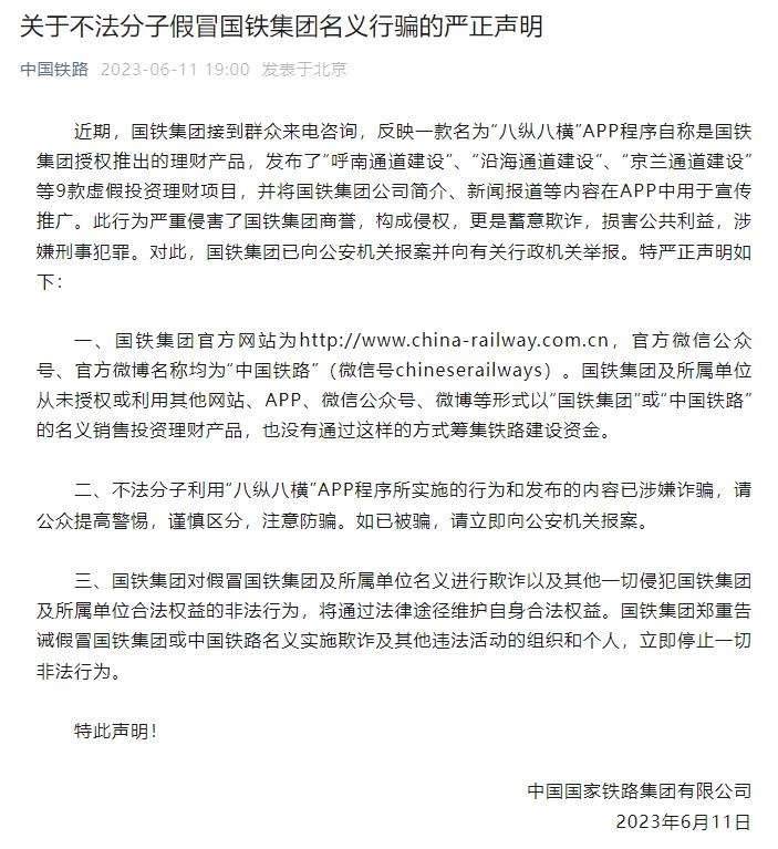 ·APP程序假冒國(guó)鐵集團(tuán)名義行騙,國(guó)鐵集團(tuán):已報(bào)警。