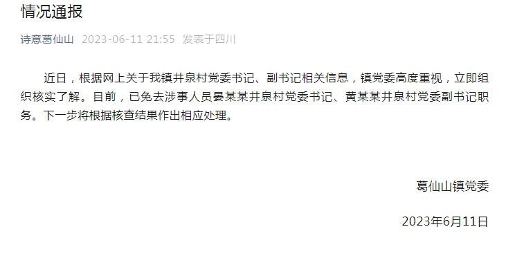 ·官方通報(bào)村副書(shū)記出軌村書(shū)記:涉事2人被免職。