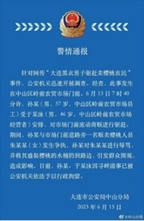 ·大連通報男子驅趕賣櫻桃農民:為市場方人員,已被行拘。