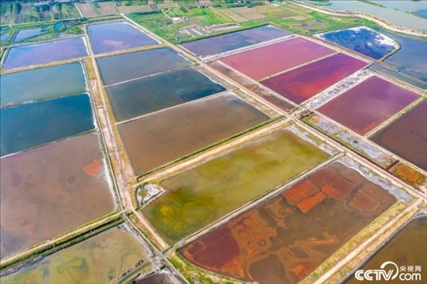 2023年6月14日,山西運城,七彩鹽湖呈現出色彩斑斕的景觀,猶如大地調色板,美不勝收。