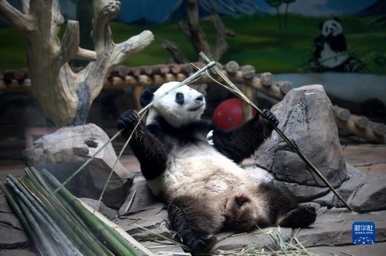 近日,遼寧地區(qū)持續(xù)高溫,在飼養(yǎng)員的精心照料下,鞍山動物園里的5歲大熊貓“剛剛”一邊吹著空調(diào)降溫,一邊享用新鮮竹子、水果、胡蘿卜、蜂蜜等,清涼度夏。