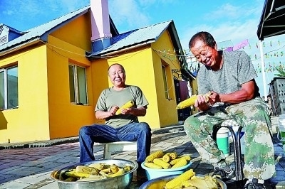 塔河縣十八站鄂倫春族鄉(xiāng)一個農(nóng)家院飯店的院子里,主人邀請來家做客的朋友一起準(zhǔn)備晚餐。馮劍飛攝