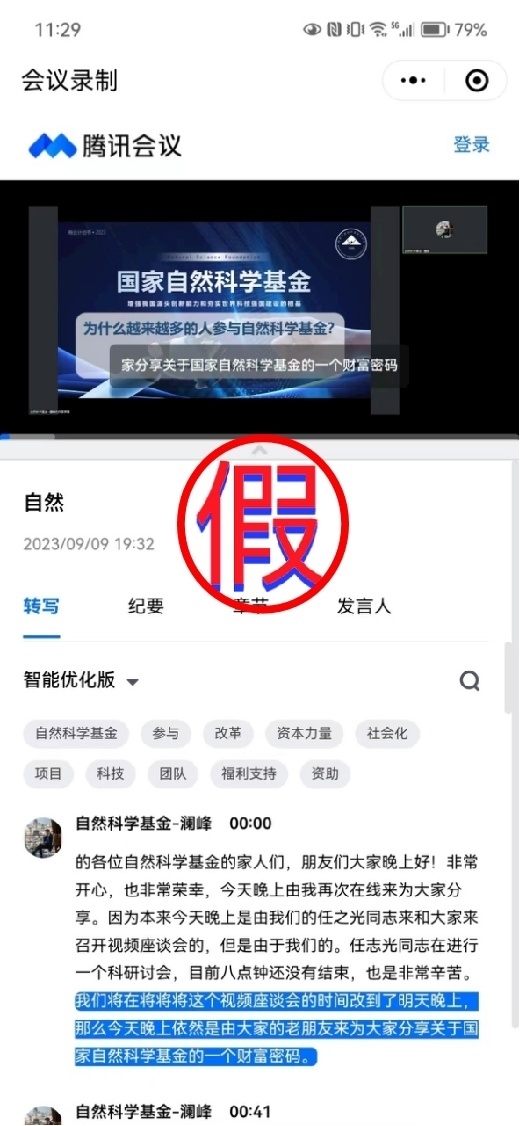 但近日,自然科學(xué)基金委陸續(xù)又收到群眾舉報,不法分子仍通過變換APP下載網(wǎng)址,召開聲稱有自然科學(xué)基金委工作人員到會宣講的分享會等方式進行虛假宣傳推廣,欺詐誘導(dǎo)社會公眾參與投資,企圖行騙牟利。這一非法行為嚴重侵犯了社會公眾合法權(quán)益,損害了國家自然科學(xué)基金的公信力。為此,我單位再次嚴正聲明如下: