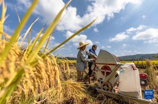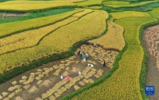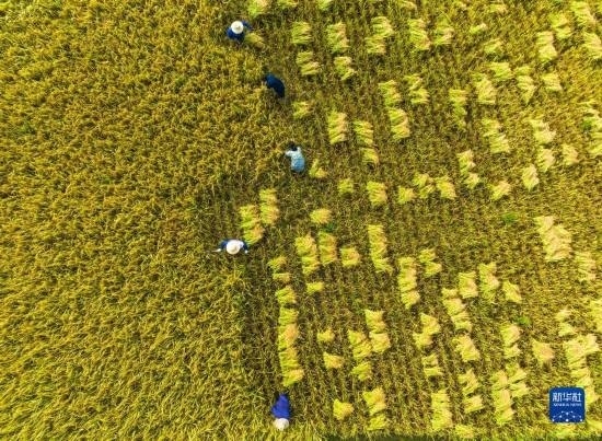 金秋時節(jié),各地農(nóng)民搶抓晴好天氣忙收獲,田間地頭一派繁忙景象。新華社發(fā)(胡攀學(xué) 攝)