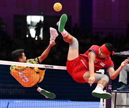 杭州亞運會藤球男子單組團體決賽現(xiàn)場。新華社記者 陳鐘昊 攝
