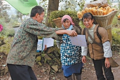 拍攝團在紫云縣四大寨鄉(xiāng)牛場村為群眾拍照。崔天云攝