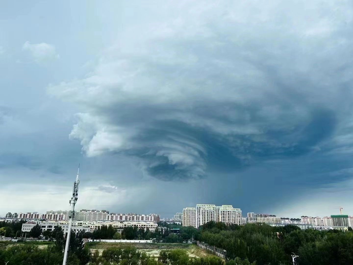 7月6日14時(shí)左右,通遼市科爾沁區(qū)上空出現(xiàn)超級(jí)單體風(fēng)暴,只見(jiàn)巨型氣旋籠罩在上空,直逼地面,猶如電影特效,不少市民被這壯觀(guān)的景象震撼到。
