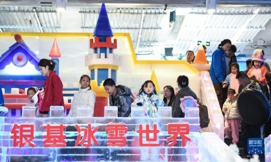 7月8日,游客在新密市銀基國(guó)際旅游度假區(qū)冰雪世界內(nèi)游玩。