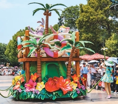 上海迪士尼樂園達(dá)菲繽紛夏日巡游正在精彩上演,吸引了眾多游客。
