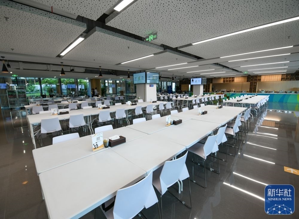?↑這是7月13日拍攝的成都大運(yùn)會(huì)主媒體中心的會(huì)客廳。新華社記者 王曦 攝