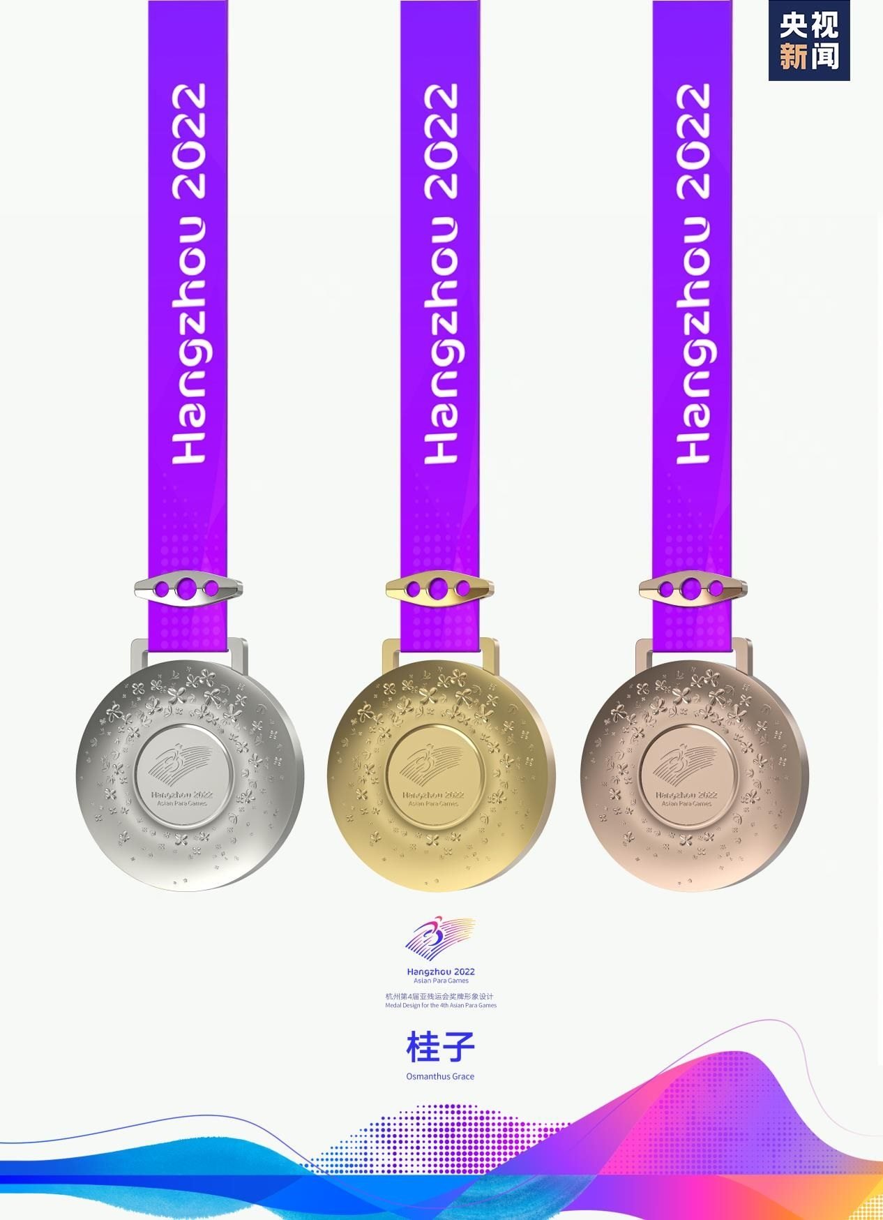 獎牌取名為“桂子”,源自描寫杭州的名句“山寺月中尋桂子”,寓含江南意境和浪漫色彩。系繼會徽“向前”,吉祥物“飛飛”,色彩系統(tǒng)“潤澤”,火炬“桂冠”后又一杭州亞殘運會視覺形象體系的核心元素,是亞殘運文化美學(xué)的重要表達。