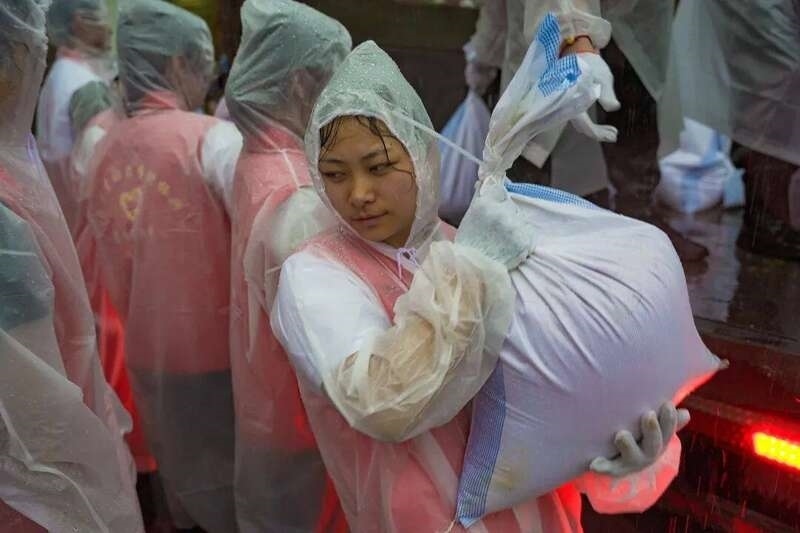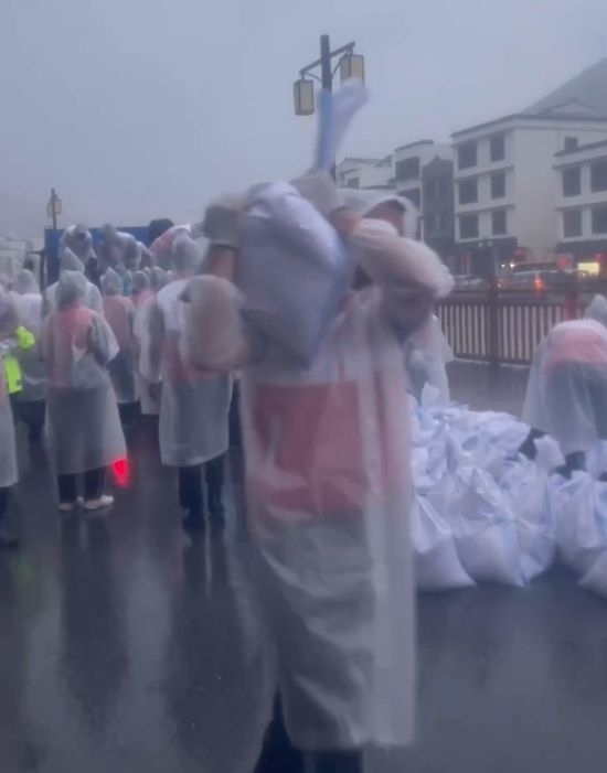 “加快速度裝好沙包!”“一個一個往后傳!”按照錢排鎮(zhèn)政府的統(tǒng)一部署,在保證安全的前提下,200余名學生志愿者參與沙袋填裝、搬運和堆疊等臺風防御工作。
