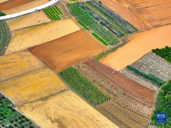 7月21日,農民在南寧市青秀區(qū)長塘鎮(zhèn)耕田(無人機照片)。新華社記者 周華 攝