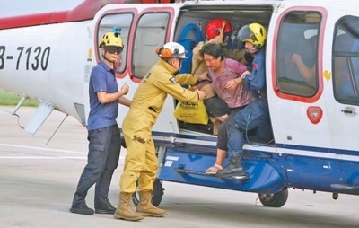 8月4日,黑龍江尚志市一面坡鎮(zhèn)萬山村,哈爾濱市森林消防支隊(duì)隊(duì)員正在解救被困村民。新華社發(fā)