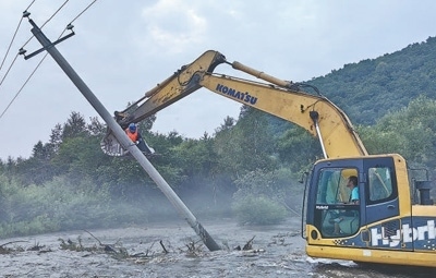 8月9日,在吉林省汪清縣八人溝農(nóng)場,國網(wǎng)吉林電力公司共產(chǎn)黨員服務(wù)隊在搶修停電線路。卜 育 石 健攝影報道