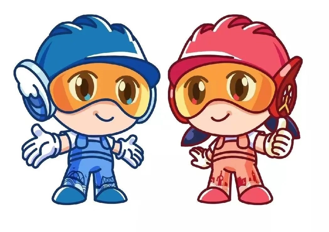 本屆大賽的吉祥物為“天天、津津”,形象為“一男、一女”兩個(gè)青年人物的造型,具有青春、活力、向上的鮮明特點(diǎn),色彩以藍(lán)色、紅色為主色調(diào),突出“技能藍(lán)、青春紅”,與大賽會(huì)標(biāo)“技”字標(biāo)識(shí)相呼應(yīng);服飾上通過(guò)統(tǒng)一的工裝服、安全帽、護(hù)目鏡、藍(lán)牙耳機(jī)等外形設(shè)計(jì),形象鮮明地展現(xiàn)新時(shí)代技能人才的外表特征;通過(guò)人物專注自信的表情和張開(kāi)雙臂、舉手點(diǎn)贊等形態(tài),凸顯了技能人才“力爭(zhēng)上游、奮勇拼搏”的精神面貌和天津人民“自信包容、樂(lè)觀好客”的性格特質(zhì)。同時(shí),通過(guò)摩天輪造型耳機(jī)、特色橋梁、港口、天津新老標(biāo)志性建筑等形象設(shè)計(jì),展現(xiàn)天津的城市元素。