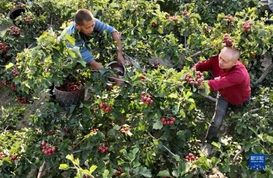 金秋時(shí)節(jié),河北省晉州市的1.2萬(wàn)畝山楂進(jìn)入成熟期,當(dāng)?shù)毓r(nóng)搶抓農(nóng)時(shí)適時(shí)采收,供應(yīng)市場(chǎng)。近年來(lái),晉州市引導(dǎo)農(nóng)民因地制宜發(fā)展山楂產(chǎn)業(yè),并推動(dòng)標(biāo)準(zhǔn)化管理、規(guī)模化種植,山楂產(chǎn)業(yè)已成為帶動(dòng)當(dāng)?shù)厝罕娫鍪盏奶厣a(chǎn)業(yè)。