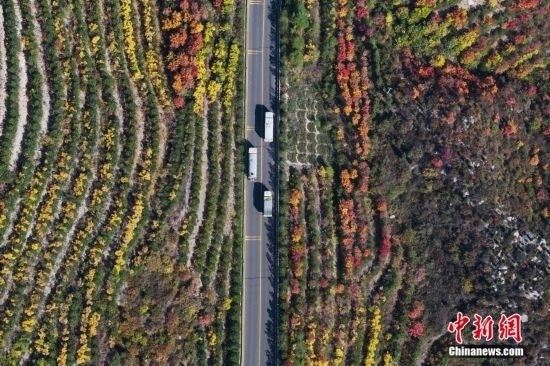 10月15日,航拍山西省太原市天龍山秋景絢麗。近日,天龍山迎來秋景最佳觀賞期。中新社記者 武俊杰 攝