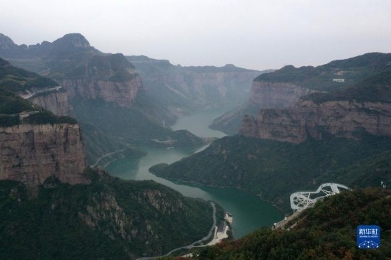這是河南寶泉旅游度假區(qū)景色(10月19日攝,無人機(jī)照片)。