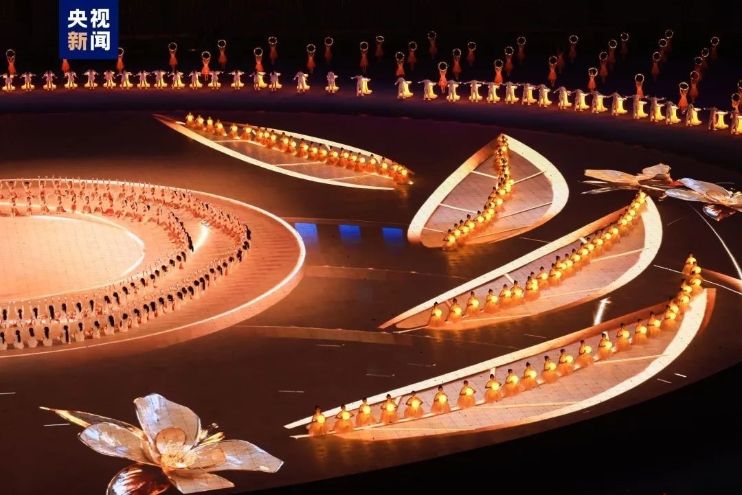 今晚的“大蓮花”,處處見桂花,時(shí)時(shí)聞得到桂花香。一朵“金桂之花”到22組金桂花團(tuán),從分散到匯聚,時(shí)而形成流水,時(shí)而形成拱橋,最終將在空中形成巨大的“金桂花冠”,向每一位運(yùn)動(dòng)員傳遞“逐夢折桂”的美好寓意。