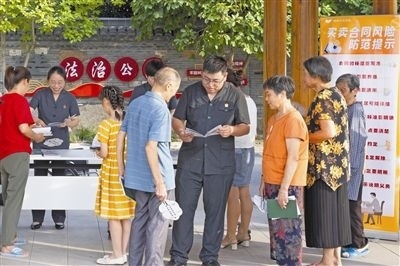 圖⑧:送法入村。圖為楓橋法庭通過設(shè)立“糾紛移動普法站”,來到轄區(qū)各村鎮(zhèn)普法宣傳,送上普法小手冊,提醒村民用好法律知識,提前防范各類風險。