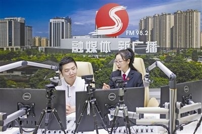 圖⑥:“云端”普法。圖為諸暨法院干警走進諸暨市FM98.2融媒體廣播間,為線上聽眾普及法律知識,并積極宣傳新時代“楓橋經(jīng)驗”。