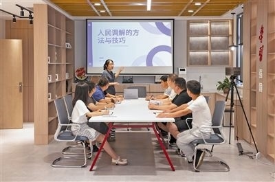 圖④:調(diào)解員培訓(xùn)。圖為楓橋法庭法官為轄區(qū)人民調(diào)解員進行現(xiàn)場培訓(xùn),從如何提升調(diào)解工作的方法與技巧入手結(jié)合案例逐一進行指導(dǎo)。