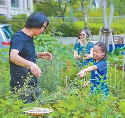 社區(qū)居民在創(chuàng)智農園了解種植相關知識。上海四葉草堂青少年自然體驗服務中心供圖