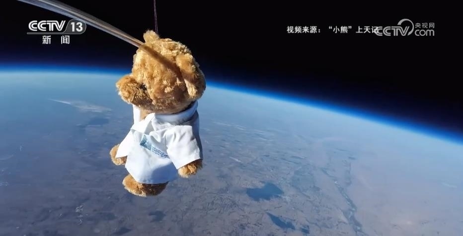 氦氣球托升著一只毛絨小熊,在泛著藍色光暈的地球上漂浮旋轉。本周二,這則小熊萬米飛天、與地球合影的視頻,被稱為理工生的優(yōu)雅浪漫。