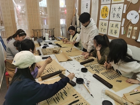 近日,陜西西安,一群年輕人在“城市緩沖區(qū)”夜校開設(shè)的書法課上學習。受訪者供圖