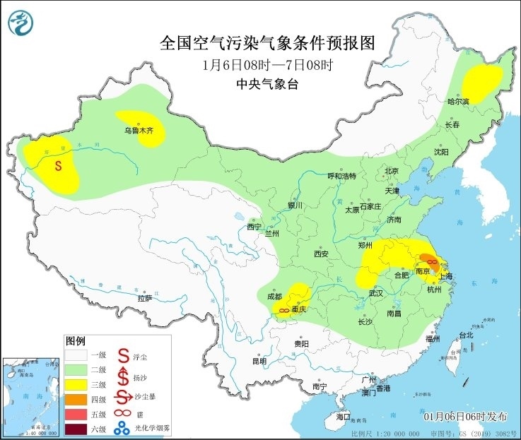 央視網(wǎng)消息:中央氣象臺6日6時繼續(xù)發(fā)布大霧黃色預警。此外,6日白天起,受冷空氣影響,黃淮南部、江淮北部等地的霾天氣逐漸減弱消散。
