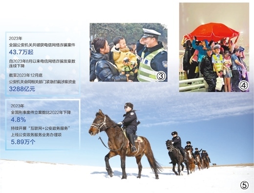 圖③:河北邯鄲市永年區(qū)警民互動(dòng)活動(dòng)中,小朋友向警察敬禮。胡高雷攝(影像中國(guó))圖④:重慶市公安局江北區(qū)分局交巡警支隊(duì)輔警夏英柯在執(zhí)勤中偶遇暴雨,與市民、游客一同避雨。重慶市公安局江北區(qū)分局供圖圖⑤:內(nèi)蒙古出入境邊防檢查總站錫林郭勒邊境管理支隊(duì)“馬背警隊(duì)”正在開展巡邏踏查。格日勒朝克圖攝(人民視覺(jué))