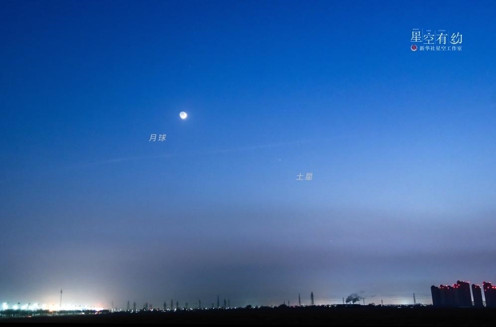 天津星空攝影愛好者楊婧2022年1月5日在天津靜海團泊湖拍攝的土星伴月。(本人供圖)