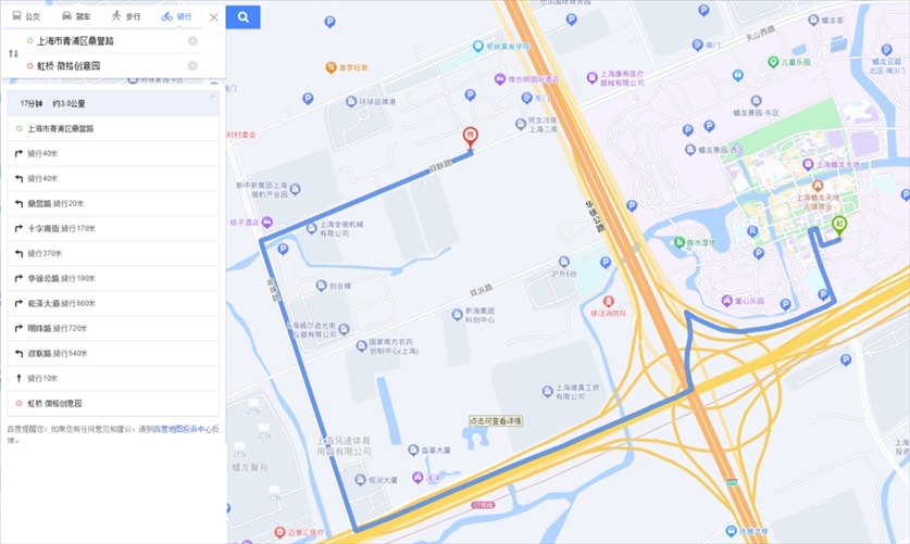 “途經(jīng)滬青平公路時(shí),平臺(tái)也愛規(guī)劃逆行路線。”陳陽(yáng)陽(yáng)提供的第3條逆行路線正屬于這一情況。這是從京華路187弄送往南山雨果小區(qū)的一單,平臺(tái)規(guī)劃的路線中,指示騎手從明珠路右拐進(jìn)入滬青平公路向西騎行至葉聯(lián)路再向南。可是,滬青平公路在葉聯(lián)路路口處沒(méi)有過(guò)街橫道線,此時(shí),平臺(tái)索性規(guī)劃騎手沿著滬青平公路南側(cè)逆向騎行。1月8日,記者實(shí)地走了一遍這段路線:若騎手沿著滬青平公路北側(cè)騎行,需一直向西騎到徐盈路才能過(guò)街,再沿著滬青平公路南側(cè)向東抵達(dá)葉聯(lián)路。手機(jī)顯示,繞行路線比美團(tuán)平臺(tái)規(guī)劃路線遠(yuǎn)了1.2公里。