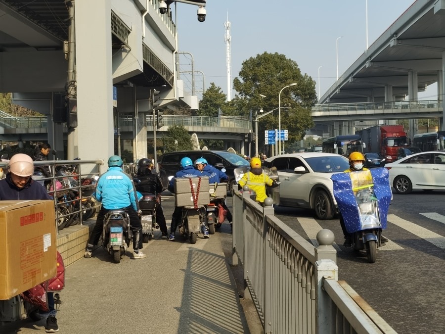 在申城街頭,外賣騎手騎著電動(dòng)自行車“逆行”的交通違法現(xiàn)象比比皆是。通常,這被視為是騎手為了縮短路程搶時(shí)間送單所做出的舉動(dòng)。申城也采取了安裝電子牌照等一系列措施,來(lái)規(guī)范騎手的行為。