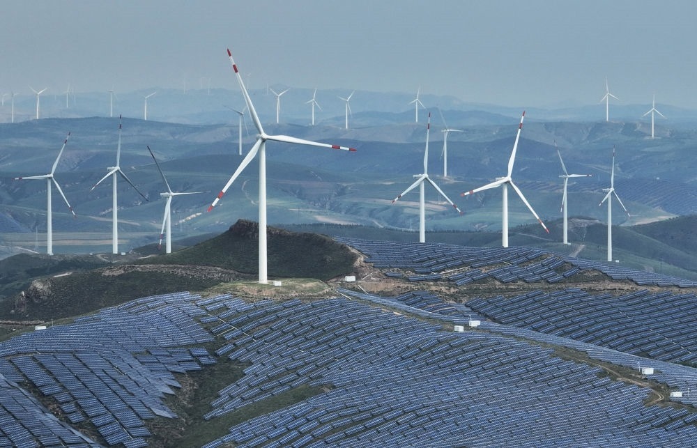 這是2023年9月2日拍攝的承德市豐寧滿族自治縣萬勝永鄉(xiāng)萬勝永村附近的一處風(fēng)光互補發(fā)電場(無人機(jī)照片)。新華社記者楊世堯 攝