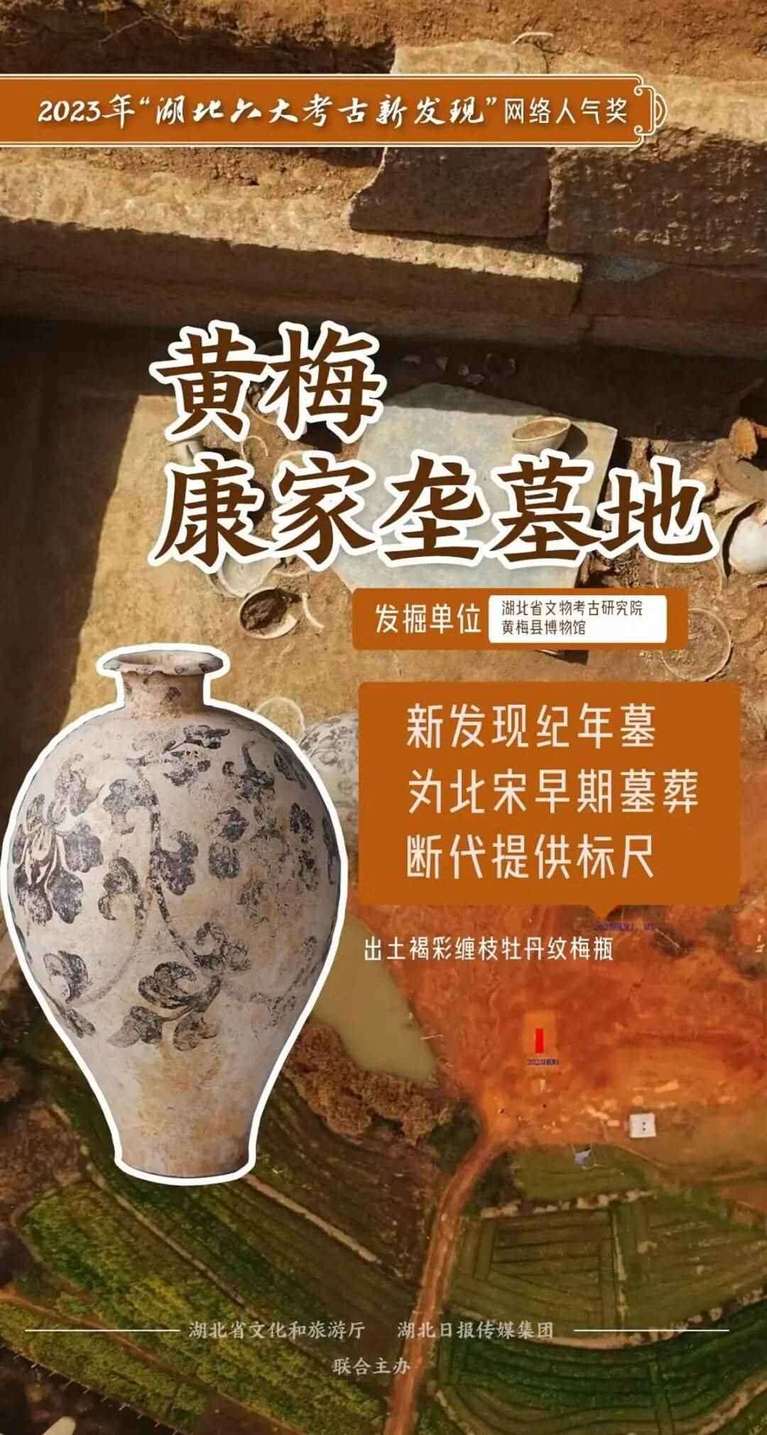 墓地位于黃梅縣濯港鎮(zhèn)程光村三組康家壟,其中M1為北宋紀(jì)年墓,為北宋早期墓葬斷代提供標(biāo)尺,墓葬形制特點(diǎn)突出,出土遺物數(shù)量豐富,尤以褐彩纏枝牡丹紋梅瓶等瓷器最顯珍貴。