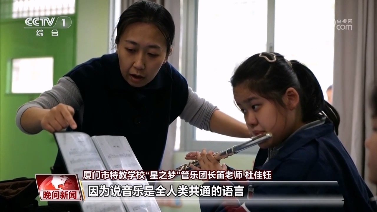 廈門市特教學(xué)校“星之夢(mèng)”管樂團(tuán)長(zhǎng)笛老師 杜佳鈺:因?yàn)檎f音樂是全人類共通的語(yǔ)言,我希望這件事情的意義也是能不要把這些孩子排除在全人類的音樂的共同事業(yè)的范圍之外。