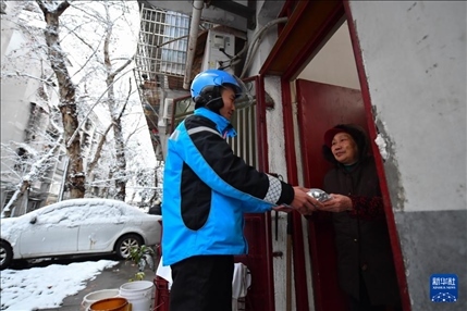 1月21日晚到22日晨,湖南長沙城區(qū)迎來2024年首場降雪。針對(duì)行動(dòng)不便的高齡、失能、殘障等獨(dú)居老人,長沙市天心區(qū)裕南街街道聯(lián)合外賣騎手志愿者為老人免費(fèi)送餐上門,解決獨(dú)居老人在低溫雨雪天氣時(shí)的就餐難題。