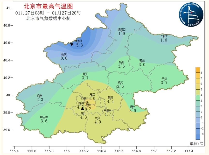 南郊觀象臺(tái)從1月29日到2月6日最高氣溫0~4℃,最低氣溫-8~-4℃。