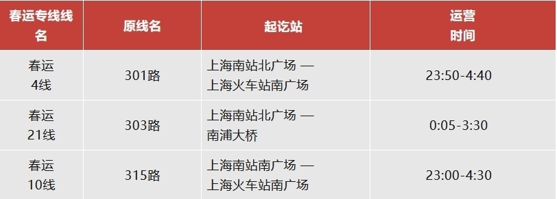 注:上海南站春運(yùn)專(zhuān)線(xiàn)運(yùn)營(yíng)日期為2月14日至3月5日。