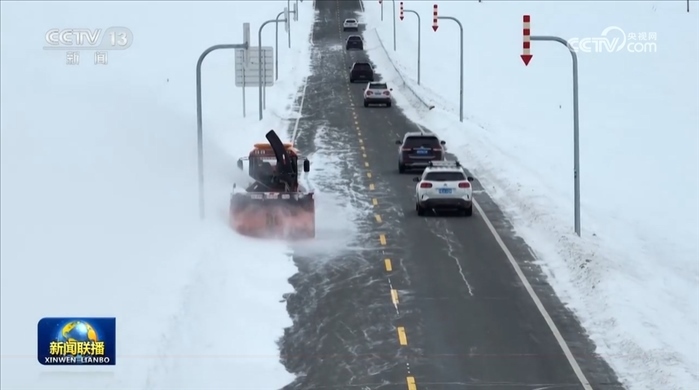 央視網(wǎng)消息(新聞聯(lián)播):從昨天(2月15日)開始,新疆多地出現(xiàn)強降雪,氣溫普降8℃—12℃,阿勒泰地區(qū)局部降溫幅度達到24℃以上。阿勒泰、巴州等地多條國道省道部分路段出現(xiàn)風吹雪,能見度較低,交警和公路管理部門進行臨時性交通管制,組織除雪設備清理路面積雪。在和靜縣,工作人員為被困車輛駕駛員送來食物和水。